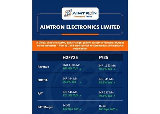 Aimtron Electronics Limited, a fast-growing Electronics System Design and Manufacturing (ESDM) company, has announced its audited financial results for FY2024-25.…